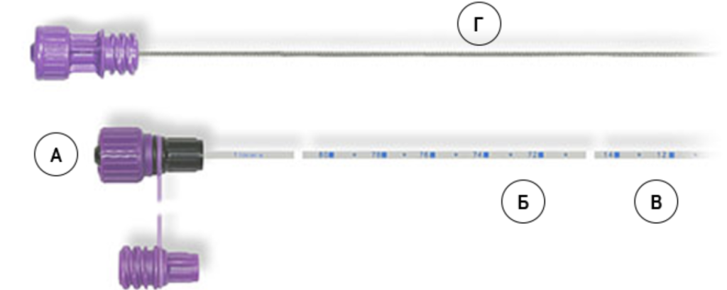 Б – прозора поліуретанова трубка з 3ма рентгенконтрастними лініями та сантиметровими позначками;